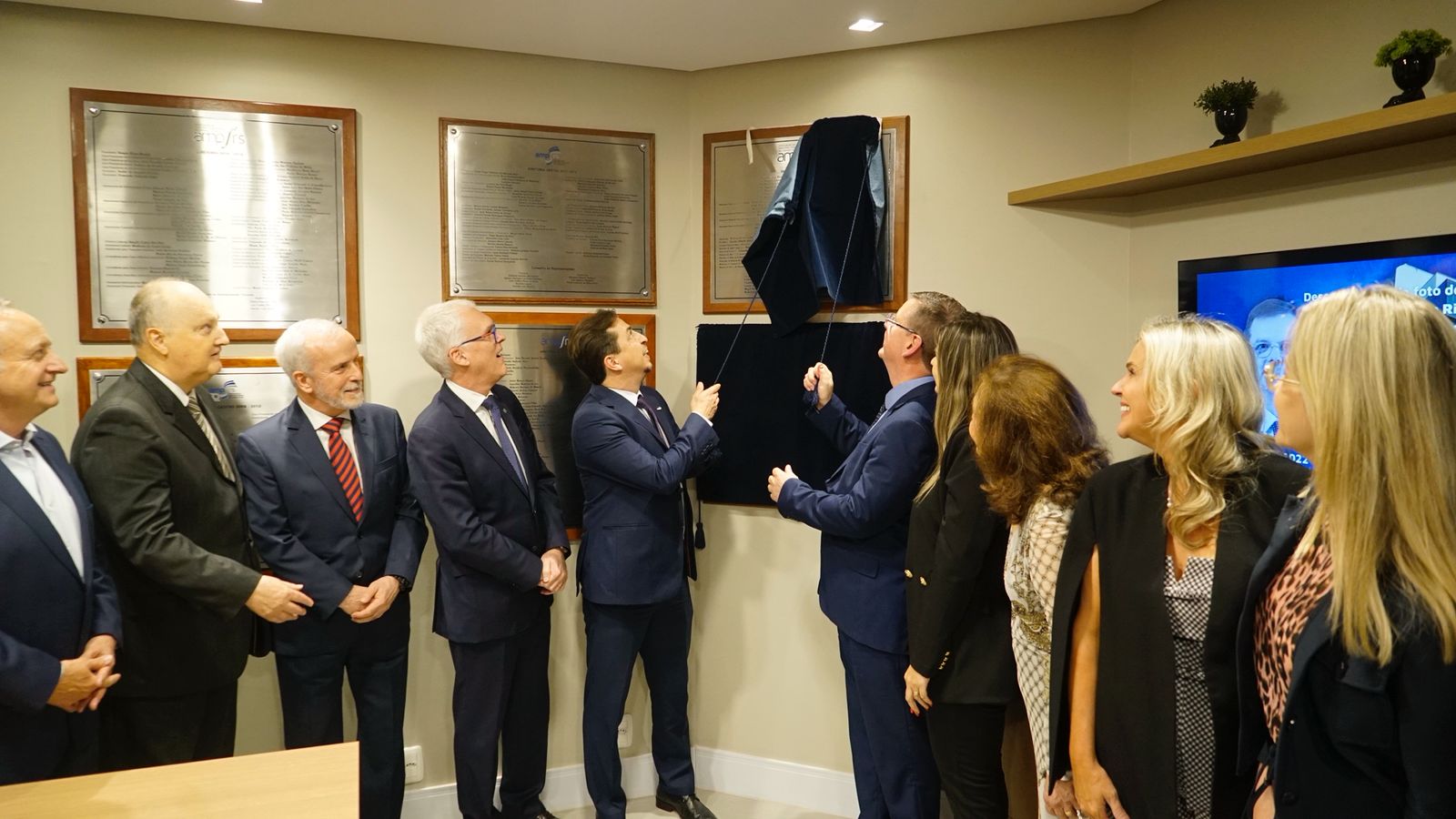 Durante a solenidade, também foram descerradas duas placas alusivas, com os nomes dos integrantes que compuseram as gestões 2020–2022 e 2022–2024, ao lado de João Ricardo na condução da AMP/RS.