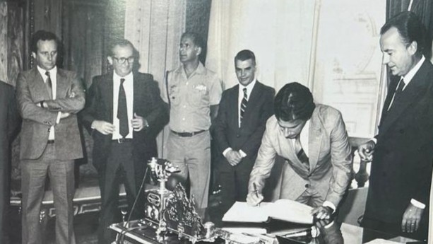 O Memorial Sérgio da Costa Franco, da AMP/RS, resgatou dois registros históricos de grande relevância sobre o então presidente da Associação do Ministério Público do Rio Grande do Sul, Paulo Olímpio Gomes de Souza, referentes ao seu segundo mandato, entre 1981 e 1982. As imagens fazem parte da obra “Minha Vida Profissional: Paulo Olímpio Gomes de Souza”, publicação que revisita momentos marcantes de sua trajetória e sua contribuição para a classe ministerial.